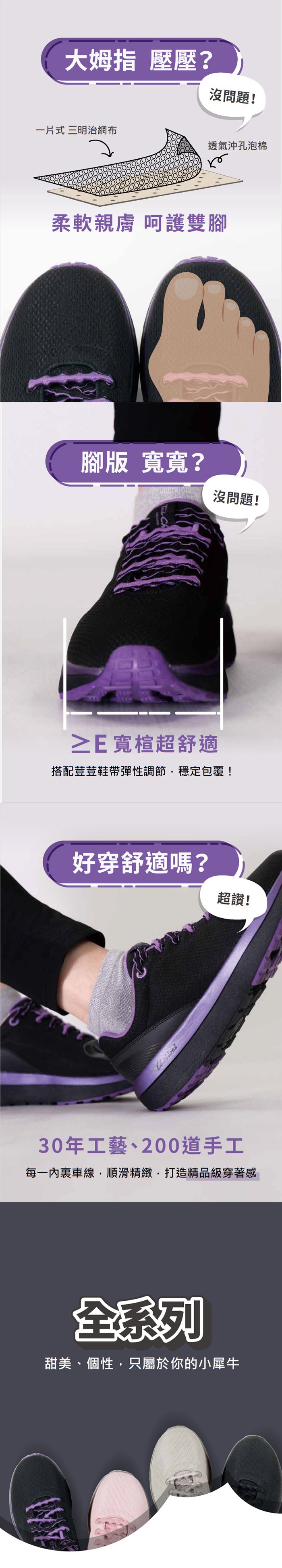 ◆ 寬楦全支撐+透氣網布 貼心呵護每一步