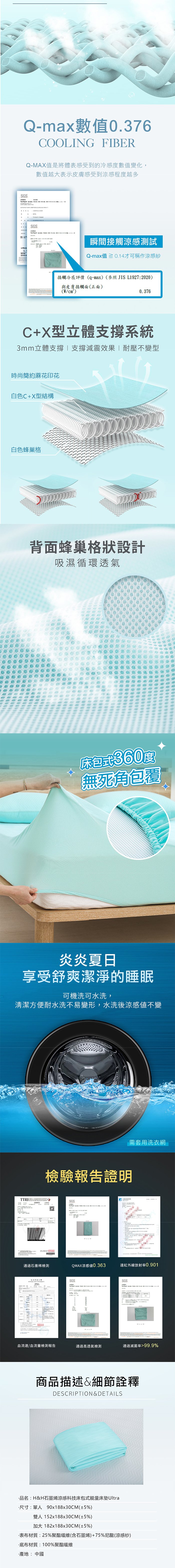 – 表布材質:25% 聚酯纖維(含石墨烯)+75%尼龍(涼感紗)
