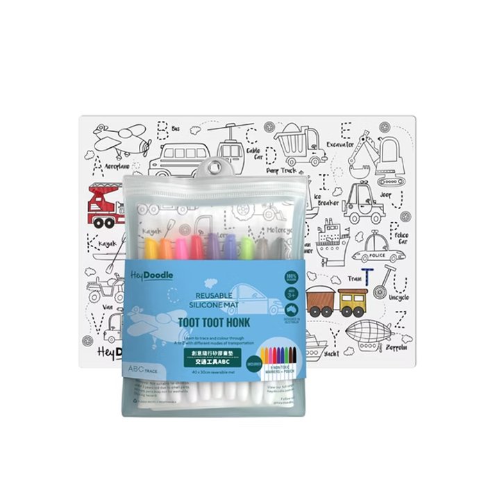 ◆ 可重複使用的A3 尺寸塗鴉畫墊 每張矽膠畫墊皆精心設計 結合教育主題 如恐龍 英文字母 農場動物 數字 100個方格等 讓好奇的孩子們在描繪 塗色的同時也能學習