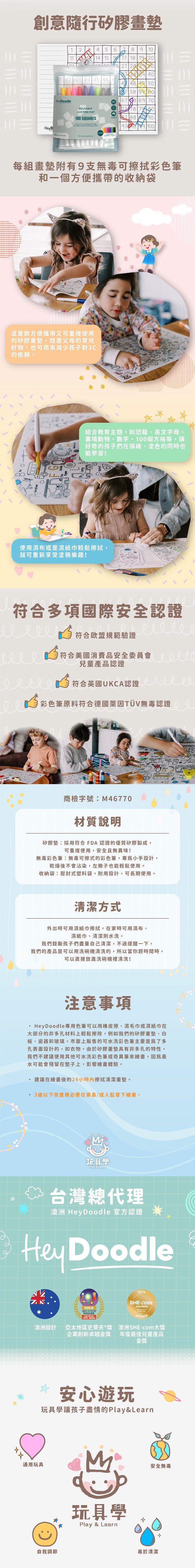 ◆ 可重複使用的A3 尺寸塗鴉畫墊 每張矽膠畫墊皆精心設計 結合教育主題 如恐龍 英文字母 農場動物 數字 100個方格等 讓好奇的孩子們在描繪 塗色的同時也能學習