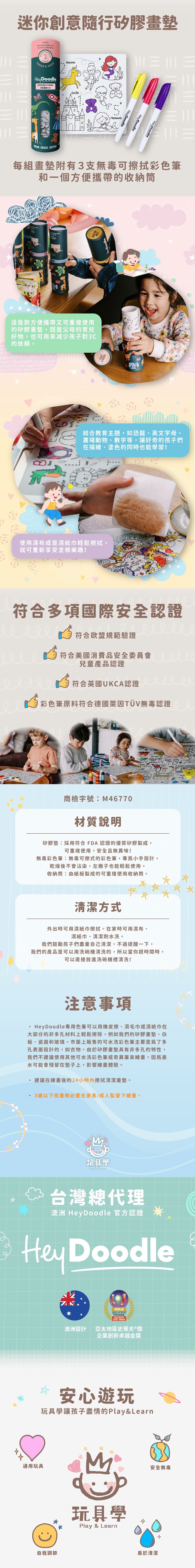 【海夫健康生活館】泓天國際 澳洲 HeyDoodle 迷你創意隨行矽膠畫墊 幻彩童話 123