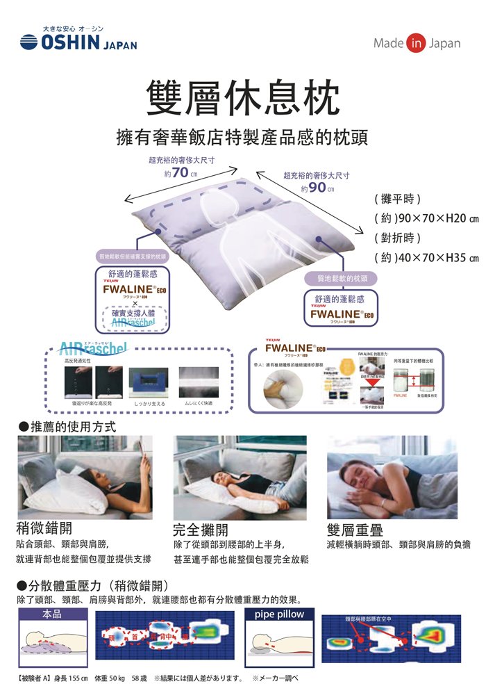 ◆ 除了頭部 頸部 肩膀與背部外 就連腰部也都有分散體重壓力的效果