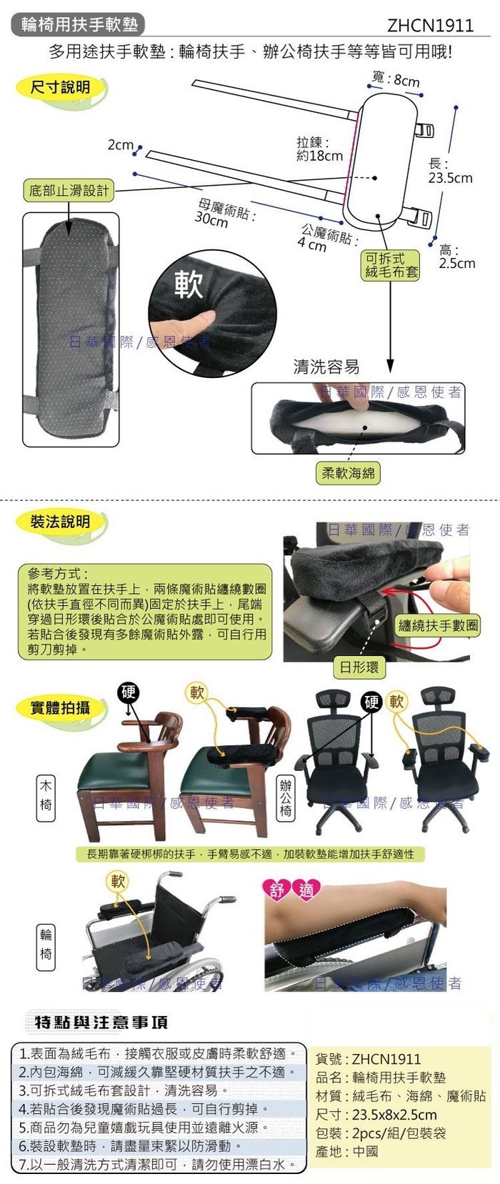 搶先評價 “【海夫健康生活館】RH-HEF 輪椅 辦公椅 多用途 扶手軟墊 2入(ZHCN1911)”