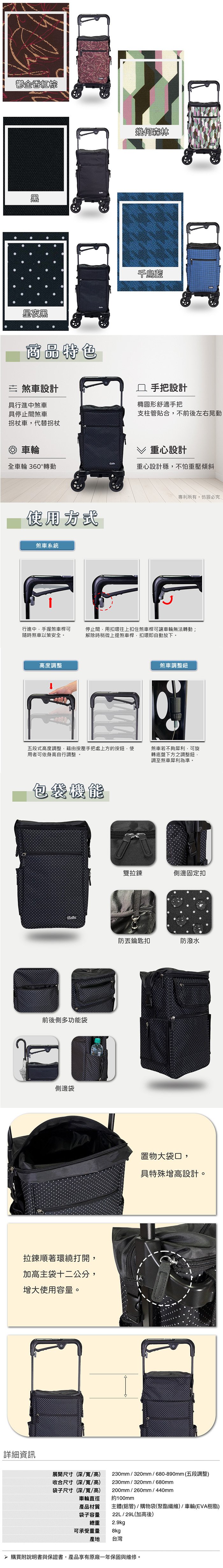 【海夫健康生活館】YL 高度調整 特殊增高置物袋 銀髮族 購物助行車 步行輔助車 鬱金香紅棕(NO.07SB)