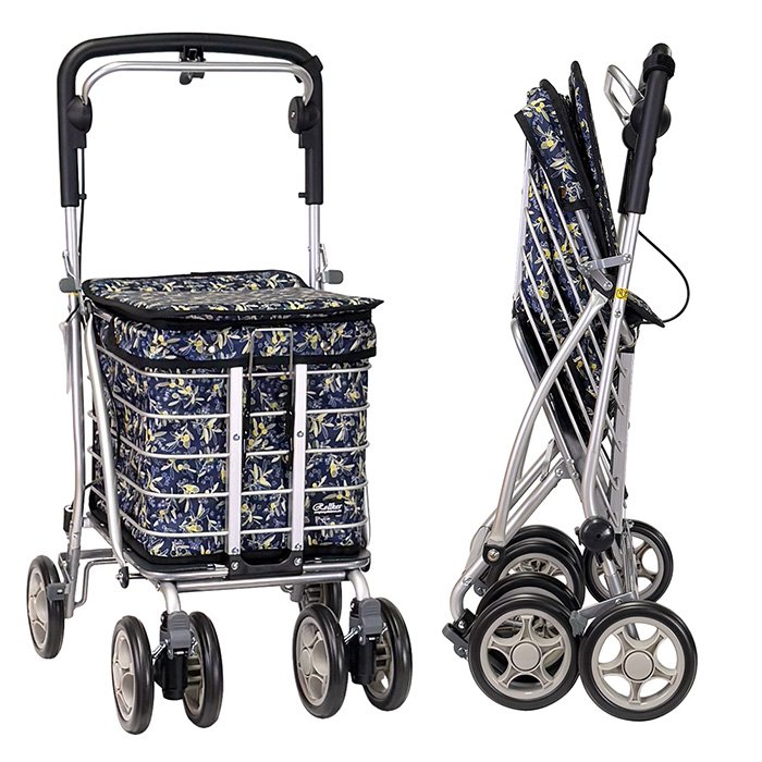 【海夫健康生活館】YL 置物大空間 保暖袋設計 銀髮族 購物助行車 櫻桃黃花(NO.68-102)