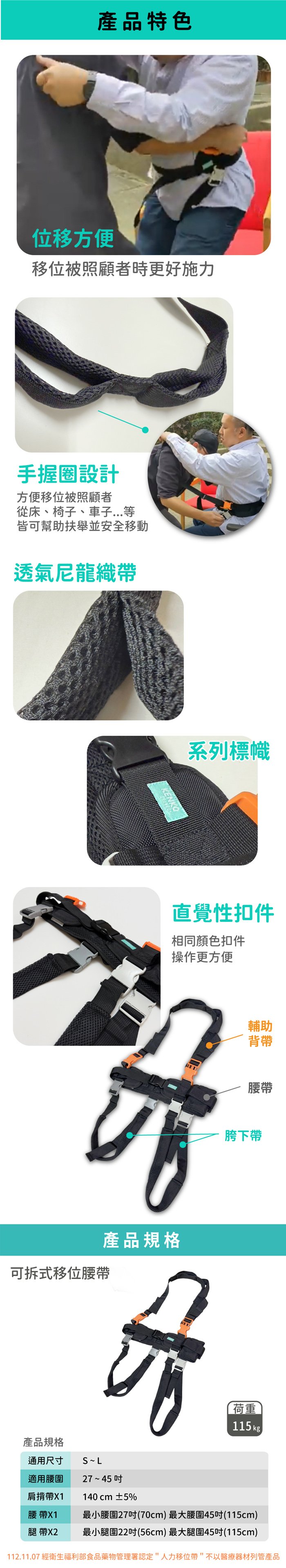 ◆ 可拆式移位腰帶(含胯下帶、背帶(學步帶)移動輔助