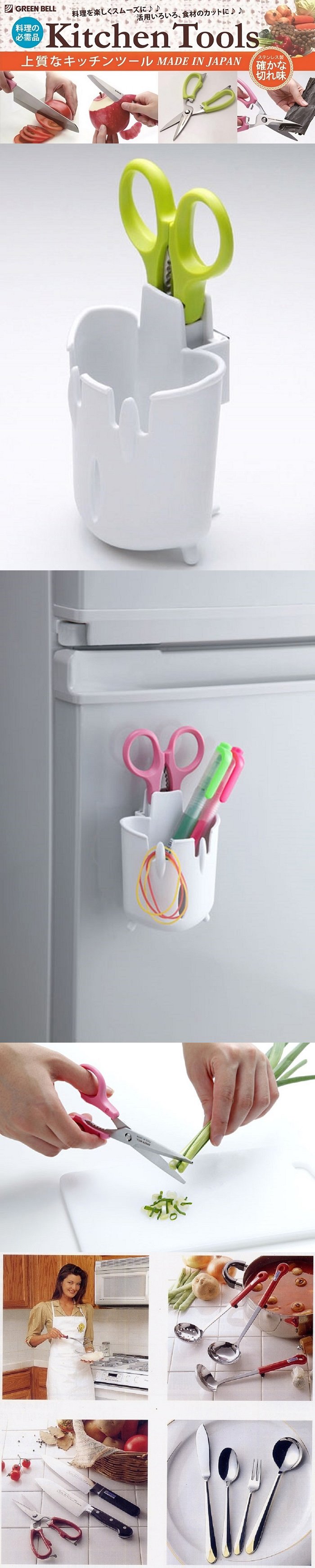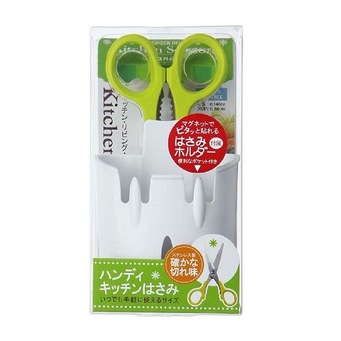 【海夫健康生活館】日本GB綠鐘 Kitchen多用途附壁掛盒料理剪刀 L140mm/40g+置剪架58g(G-2008)