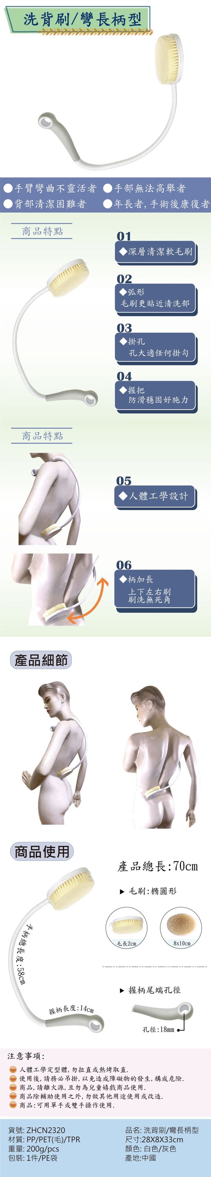 【海夫健康生活館】RH-HEF 洗背刷 彎長柄型 軟毛沐浴刷 搓背刷 (ZHCN2320)