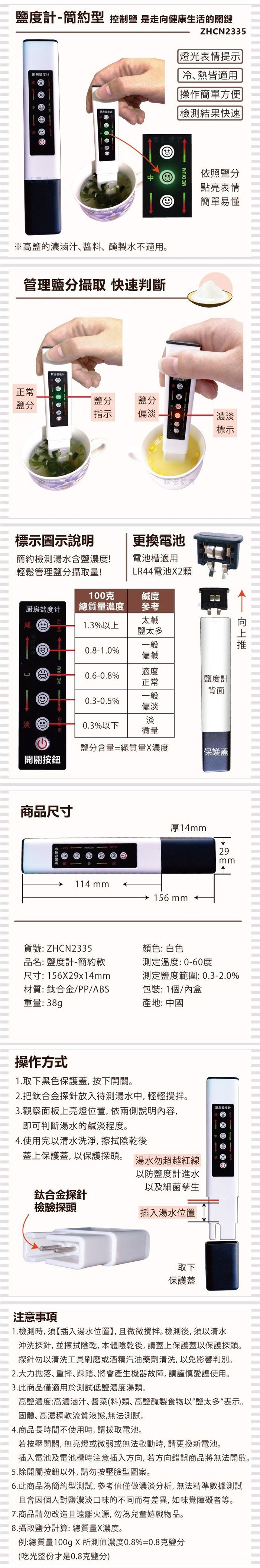 ◆ 測定鹽度範圍:0.3-2.0%