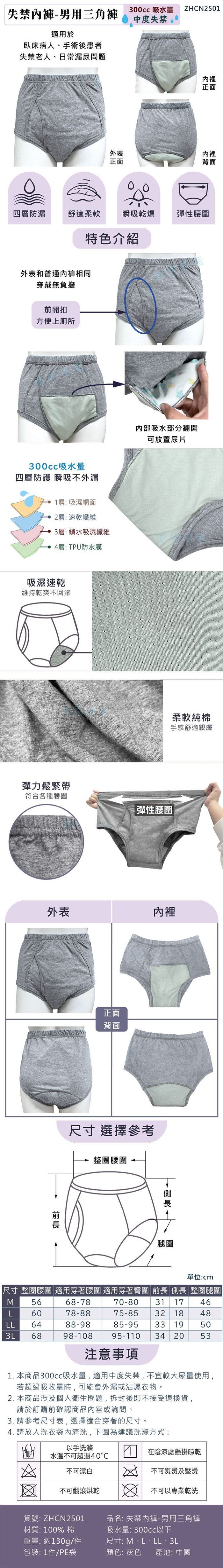 【海夫健康生活館】RH-HEF 失禁內褲 男用三角褲 中度漏尿 300cc LL號(ZHCN2501)
