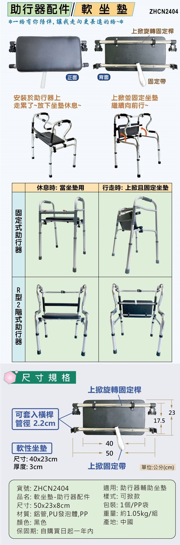 【海夫健康生活館】RH-HEF 可上掀固定輔助軟坐墊 助行器配件 (ZHCN2404)
