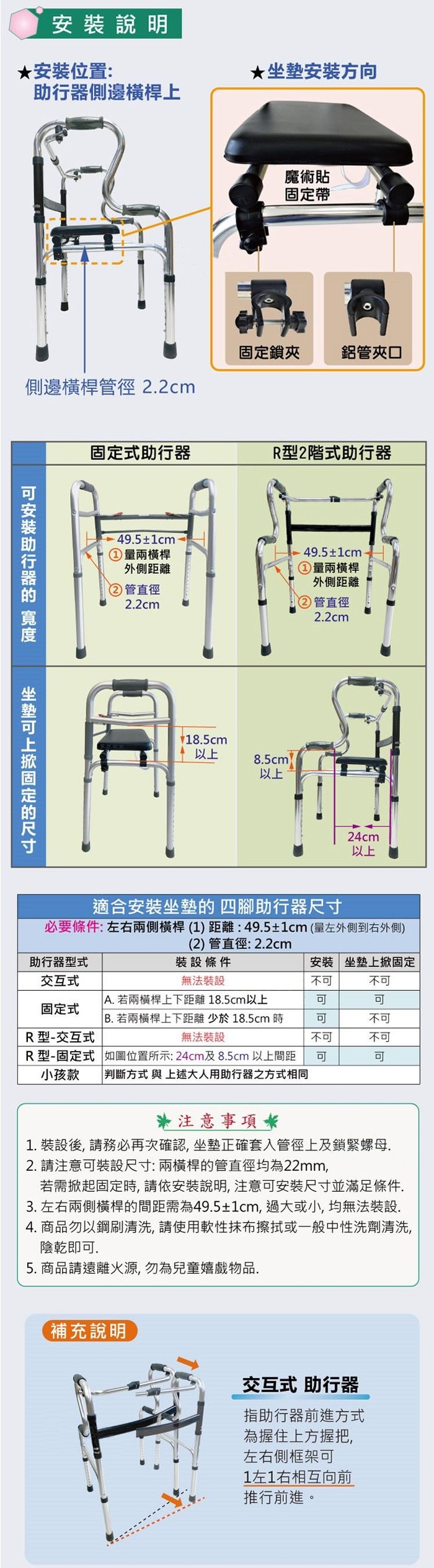 ◆ 安裝於助行器上 走累了 放下坐墊休息