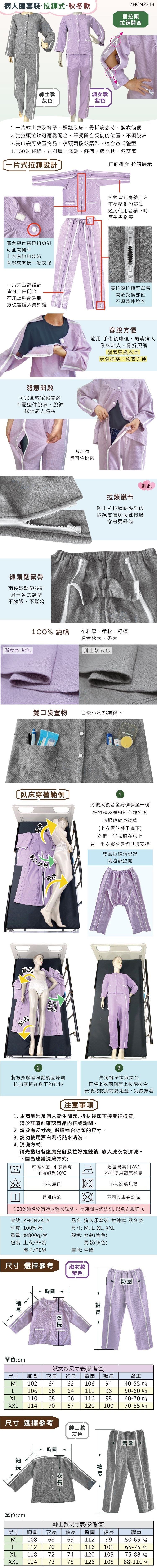 【海夫健康生活館】RH-HEF 居家照護 易穿脫臥床服套裝 拉鍊式-秋冬款 (ZHCN2318)