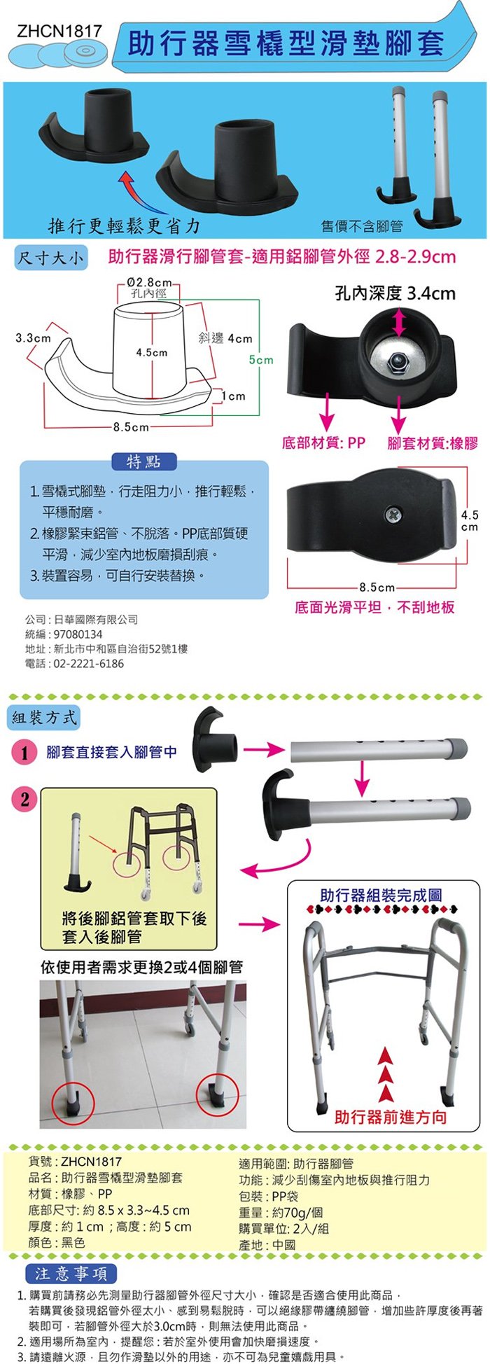 ◆ 購買前請務必先測量助行器腳管外徑尺寸大小,確認是否適合使用此產品。
