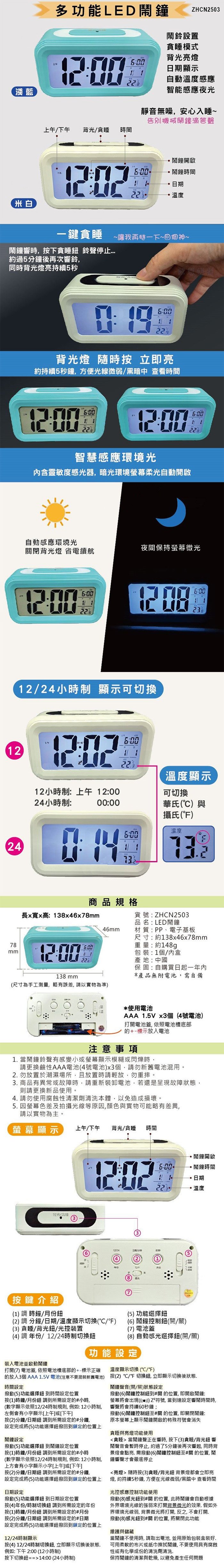 ◆ 當鬧鐘鈴聲有感變小或螢幕顯示模糊或閃爍時,請更換鹼性AAA電池(4號電池)x3個,請勿新舊電池混用。