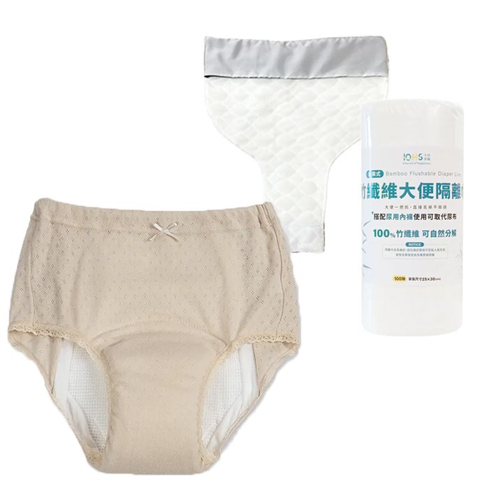 【海夫健康生活館】IOHS十分幸福 日本女性速吸尿用內褲150c.c.裸膚色(2代)+大便隔離墊+隔離巾