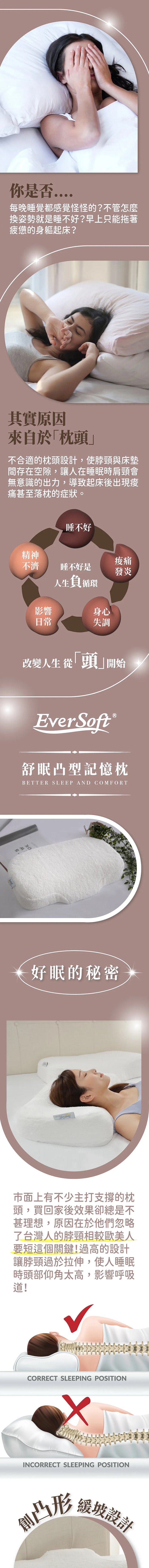 ◆ EverSoft寶貝墊獨家凸形設計 完美服貼頭肩頸曲線 改善痠痛落枕