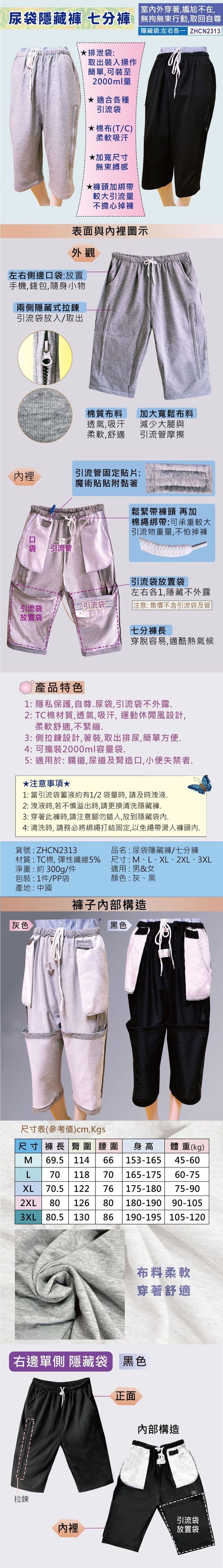 ◆ 隱藏袋左右各一個 可攜裝2000ml容量袋 適合各種引流袋