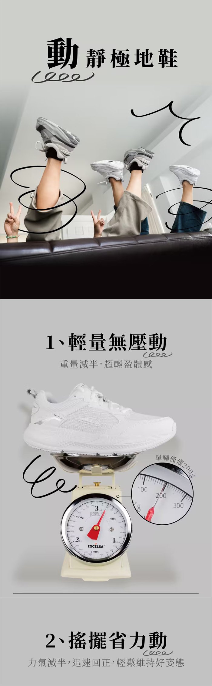 ◆ 適合久站久走:微笑弧形底讓每一步更順暢 省力