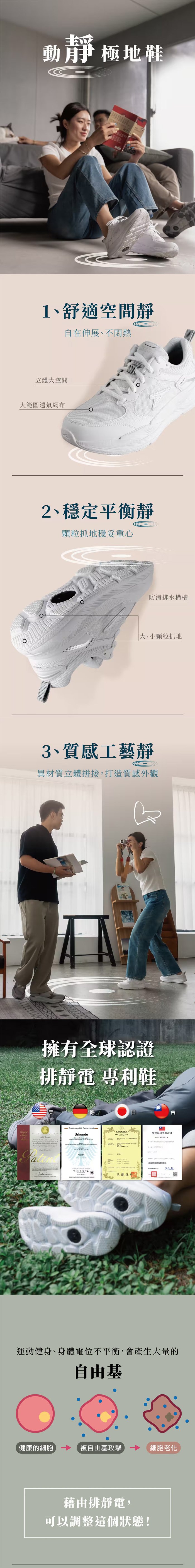 ◆ 排靜電功能:專利接地氣技術 有效釋放人體靜電 減輕靜電干擾