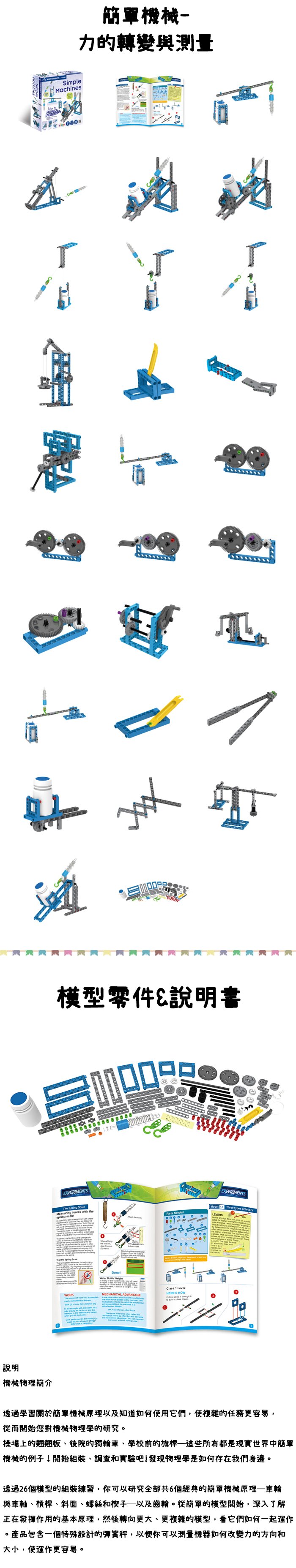 ◆ 包含7個模型的組裝說明 以及詳盡的簡單機械入門啟發引導