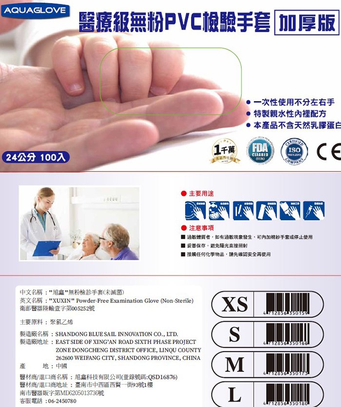 品名:”旭鑫” 無粉檢診手套(未滅菌)