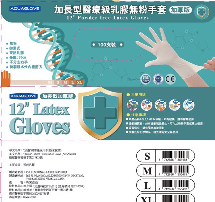 品名:“旭鑫”病患檢查用手套 (未滅菌) (無粉)