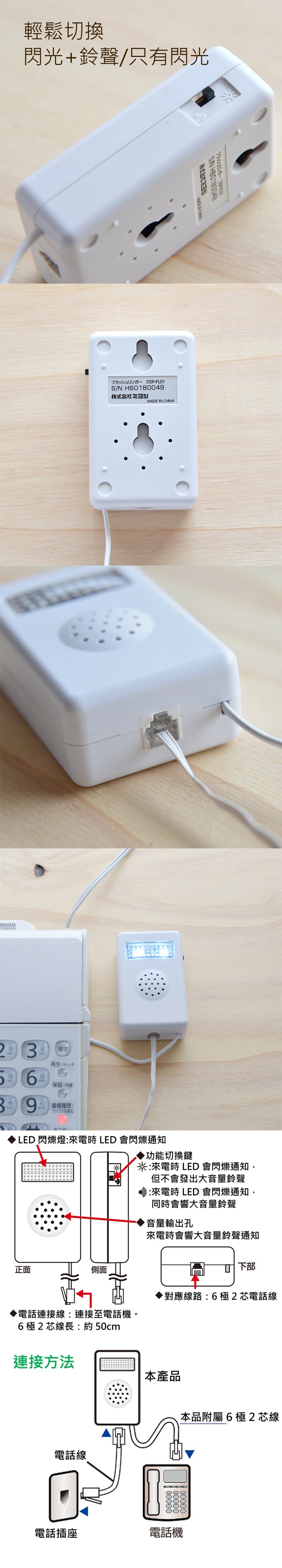 ◆ 本產品不可使用於6極6芯及6極4芯的電話機。
