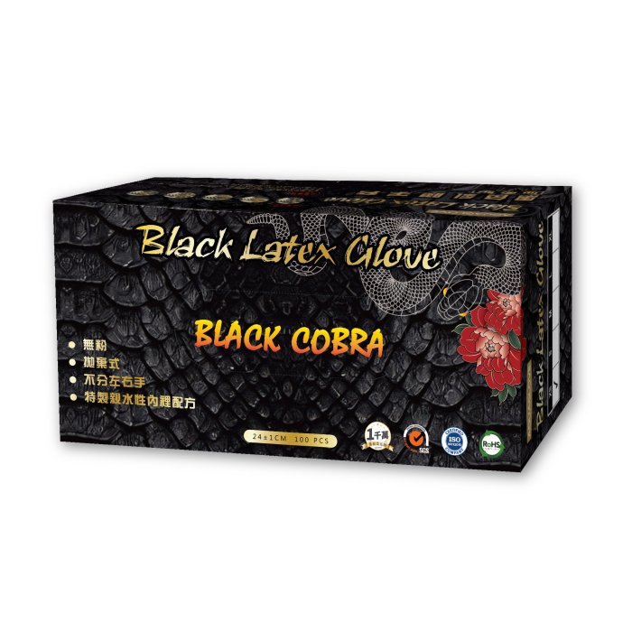 ◆ 乳膠手套(Latex) BLACKCOBRA 系列 無粉設計 天然乳膠材質製成 降低過敏風險 適合一次性防護使用