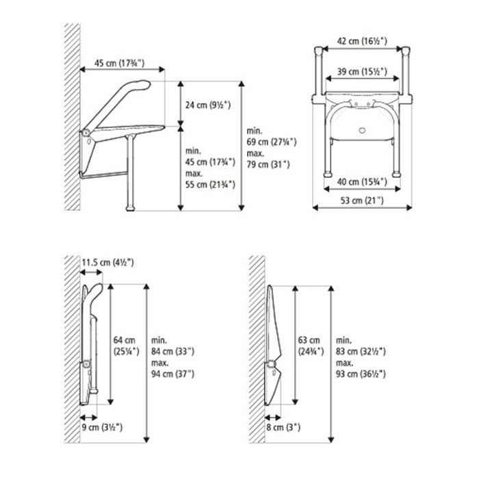 ◆ 一個聰明而優雅的淋浴洗澡椅 可以折疊倚靠在牆上