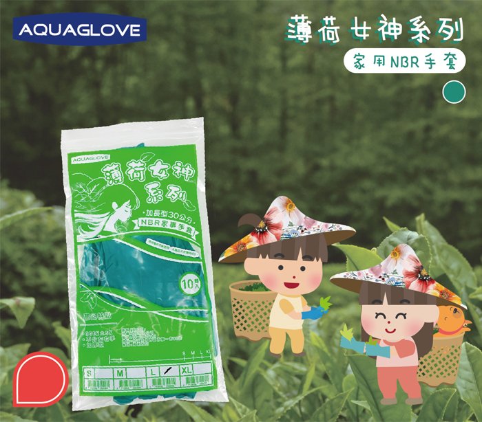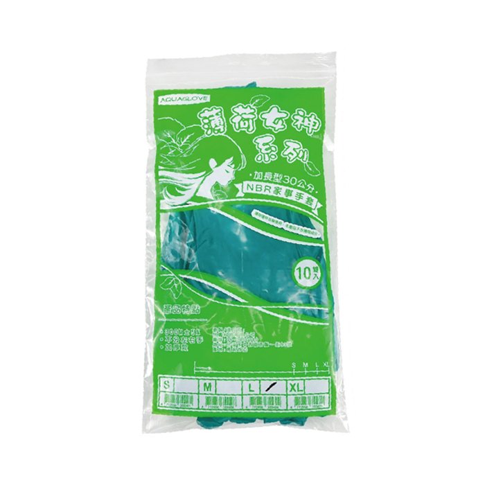 【海夫健康生活館】AQUAGLOVE 薄荷女神系列-天然乳膠家事手套 30cm加長設計(10包/250雙)