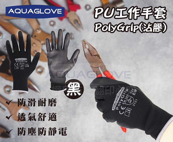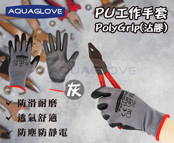 【海夫健康生活館】AQUAGLOVE PU防滑工作手套 PolyGrip(10包/300雙)