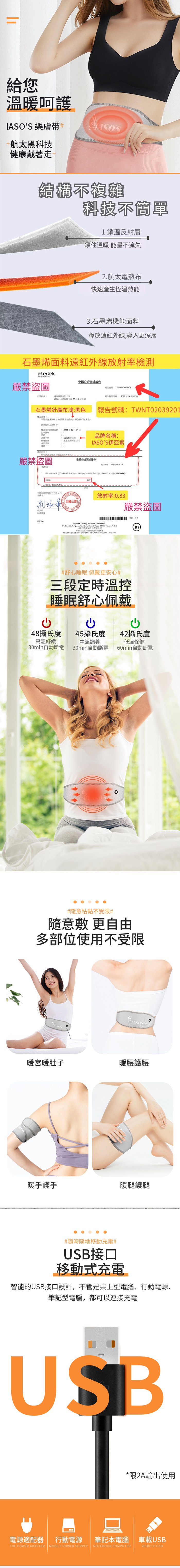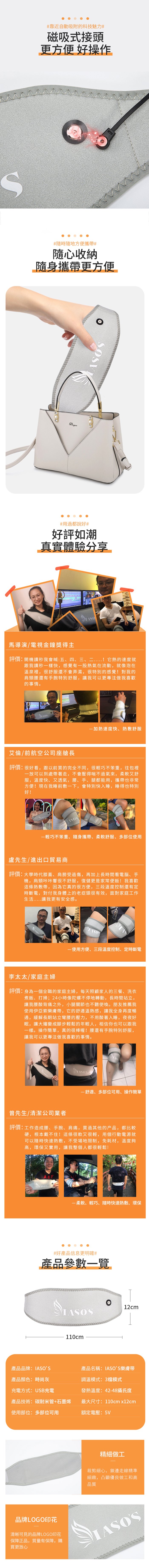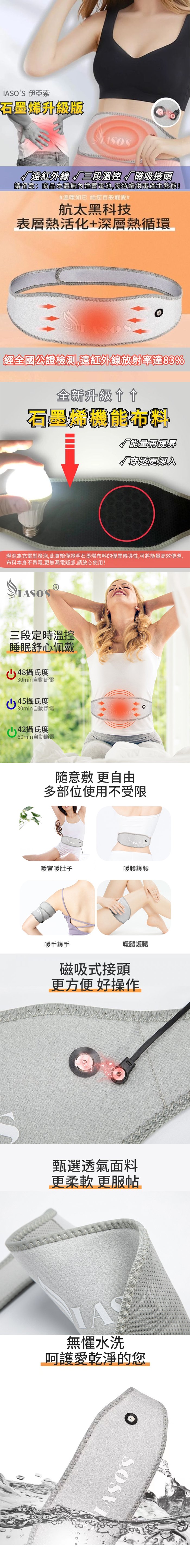 【海夫健康生活館】IASO’S 伊亞索 石墨烯腰腹熱敷帶/墊 附延伸加壓彈力帶