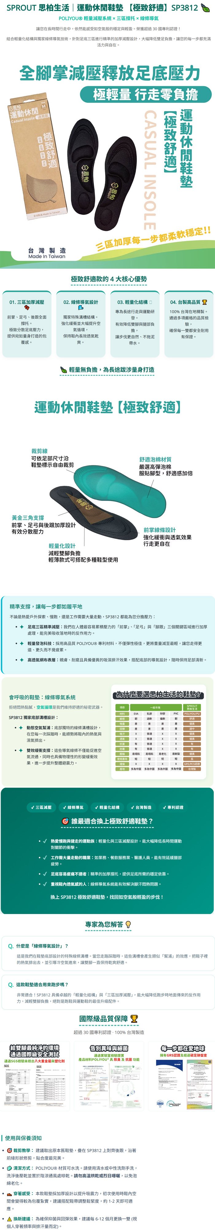 ◆ 台製高品質:通過多項嚴格檢驗 確保每一雙鞋墊都安全 耐用 有保證