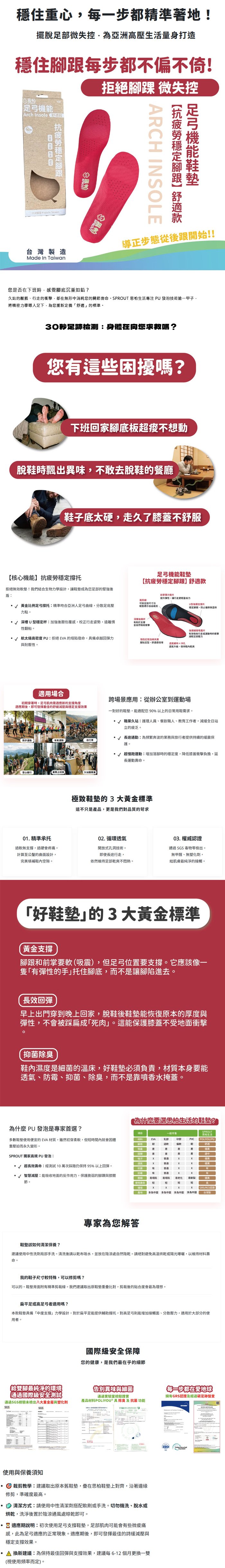 【海夫健康生活館】SPROUT思柏 抗疲勞穩定腳跟-低足弓/扁平足 足弓機能鞋墊(SP3616)