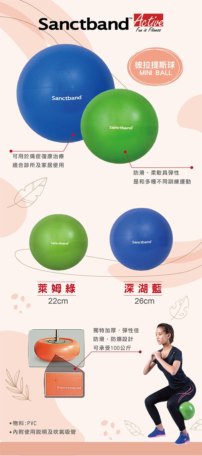 搶先評價 “【海夫健康生活館】科正國際 Sanctband 彼拉提斯球 藍色 直徑26cm 雙包裝(GB-26)”