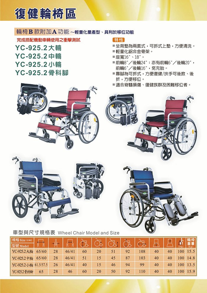 ◆ 尺寸:座寬18吋;後輪24吋、前輪8吋