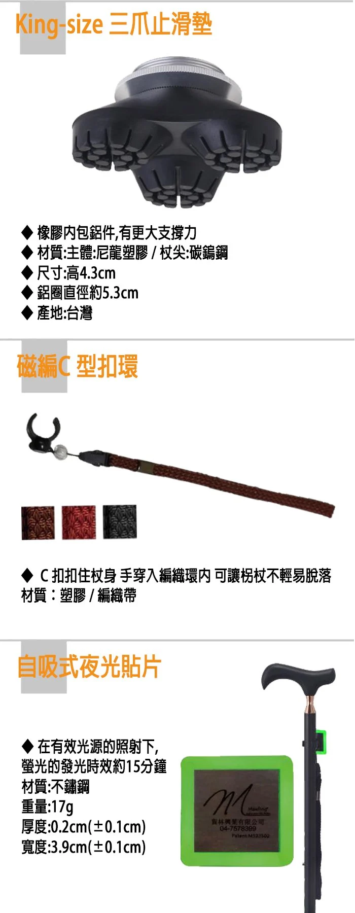 ◆ C扣扣住杖身 手穿入編織環內 可讓柺杖不輕易脫落