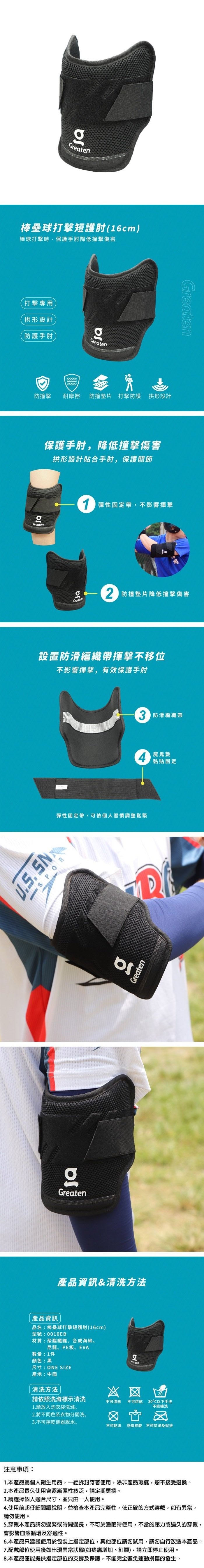 【海夫健康生活館】Greaten 極騰護具 拱形設計 棒壘球打擊短護肘 16cm(0010EB-JR)