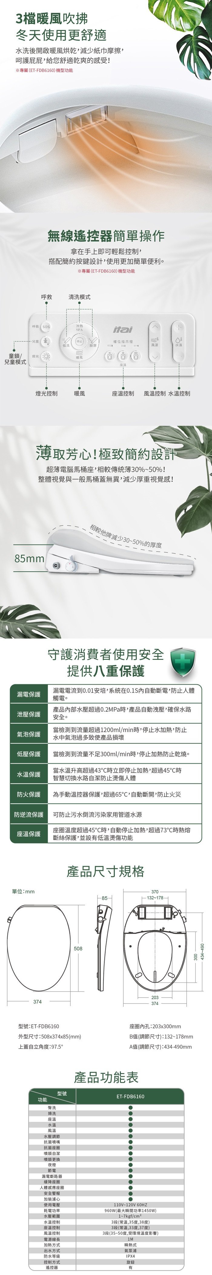 ◆ 型號:ET-FDB6160(瞬熱式遙控款微電腦馬桶座)X1入