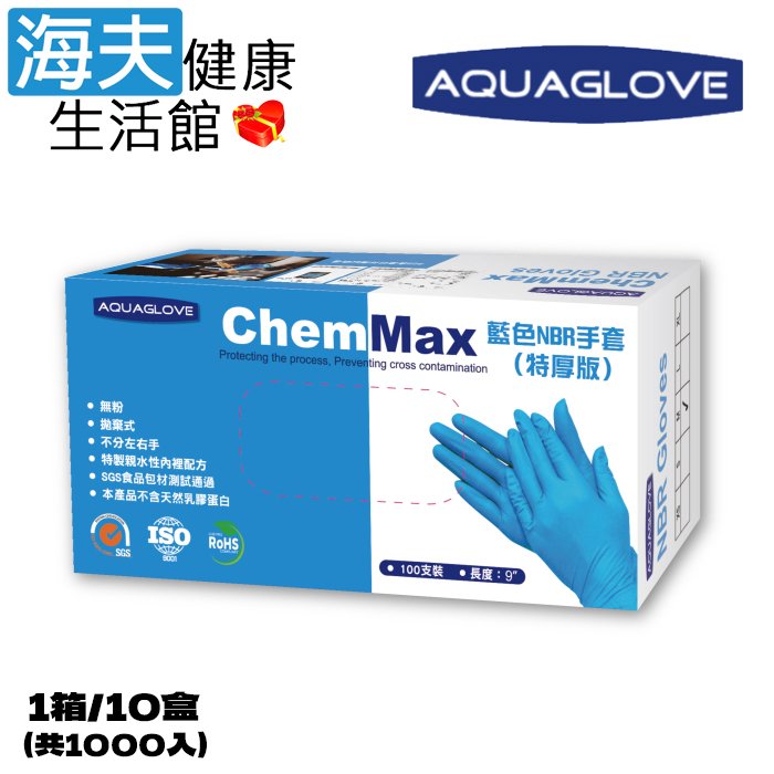 【海夫健康生活館】AQUAGLOVE Chem Max系列-9吋 藍色NBR手套(1箱/10盒)