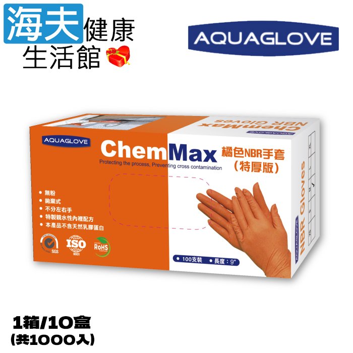 【海夫健康生活館】AQUAGLOVE Chem Max系列-9吋 橘色NBR手套(1箱/10盒)