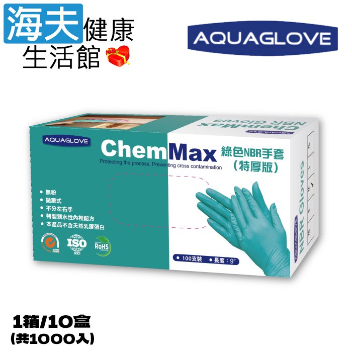 【海夫健康生活館】AQUAGLOVE Chem Max系列-9吋 綠色NBR手套(1箱/10盒)