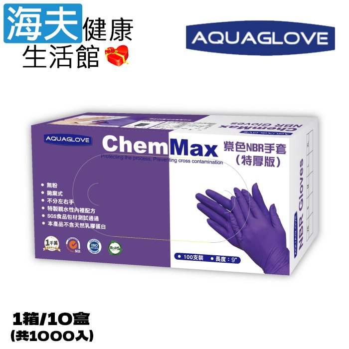 【海夫健康生活館】AQUAGLOVE Chem Max系列-9吋 紫色NBR手套(1箱/10盒)