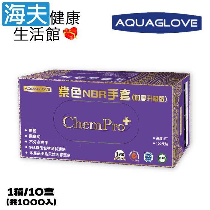 【海夫健康生活館】AQUAGLOVE Chem Pro系列-9吋 紫色NBR手套(1箱/10盒)