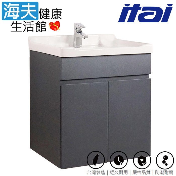 【海夫健康生活館】ITAI一太 碳灰鋼烤設計 瓷盆浴櫃組 61×47.5x91cm(Z-GLDC001)