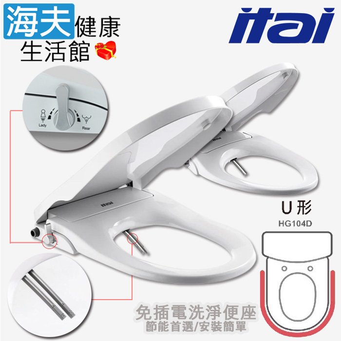 【海夫健康生活館】ITAI一太 節能首選 免插電洗淨便座 U型 51.3x38x9.8cm(HG104D)