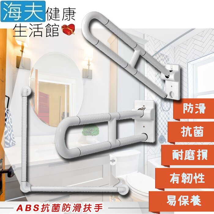 【海夫健康生活館】裕華 ABS抗菌系列 活動馬桶抗菌扶手+L型扶手 50X50cm(T-058B+T-050B)