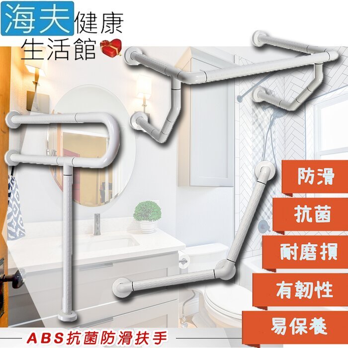 【海夫健康生活館】裕華 ABS抗菌系列 面盆抗菌扶手+L型扶手 50X50cm(T-050B+T-111B)